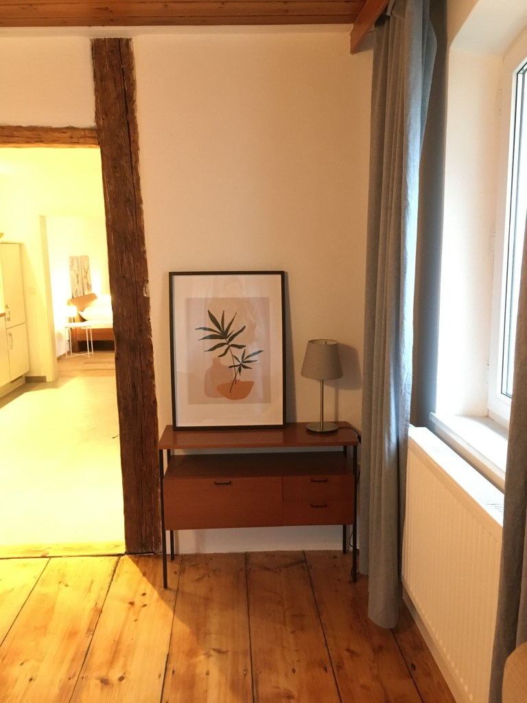 Die mit viel Liebe eingerichtete Ferienwohnung ist 57m² groß und befindet sich im Erdgeschoss unseres Mehrfamilienhauses. Sie verfügt über einen separaten Eingang, der über 3 Stufen erreichbar ist.
